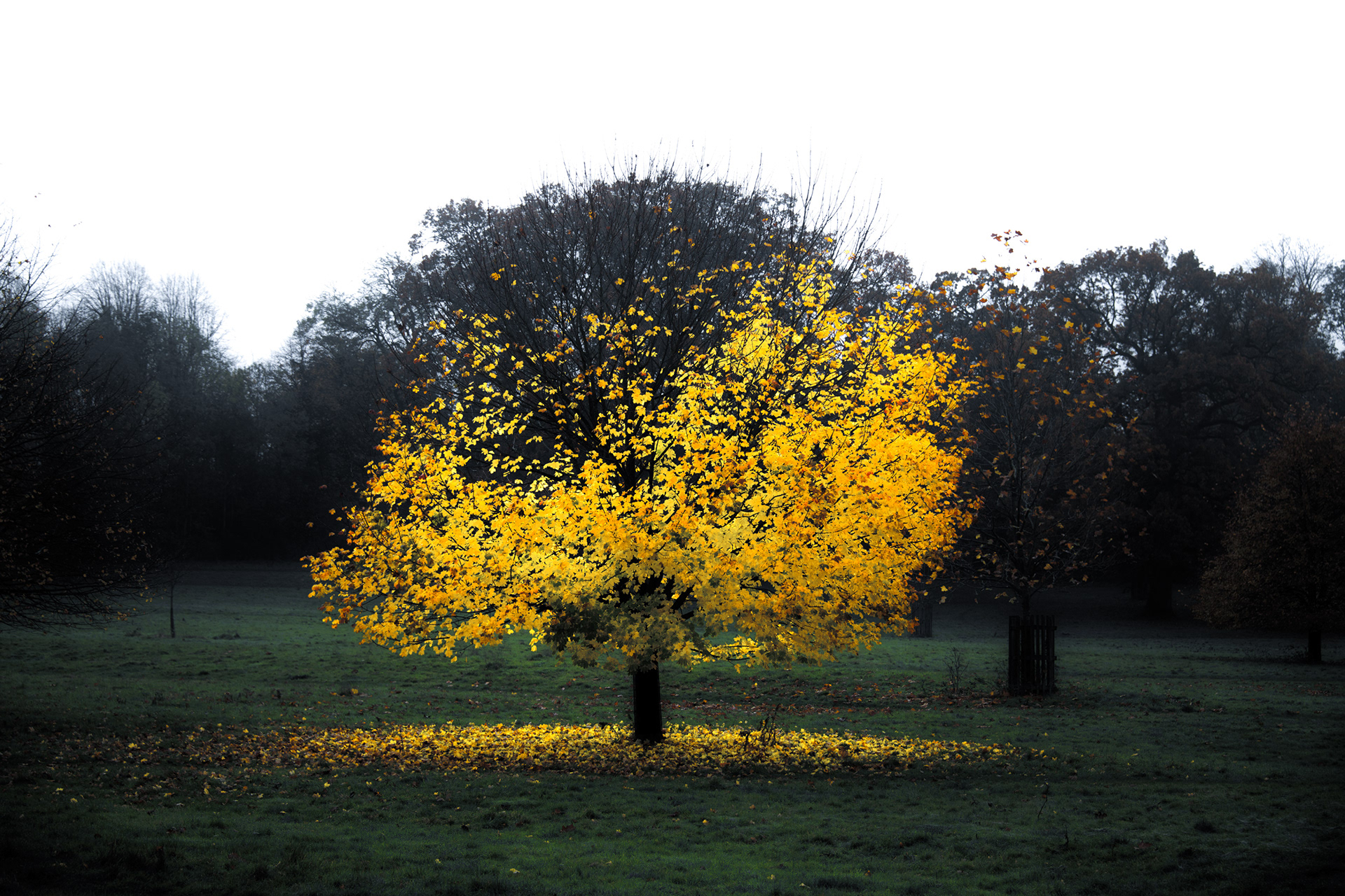 Shot in woodlands, parks and farmland the photographs draw heavily on the imagery of folk lore, fairy tales and myth; the iconography of a deep-rooted psychological attachment to the land that is attuned to its beauty, portents, enchantment and cycles.