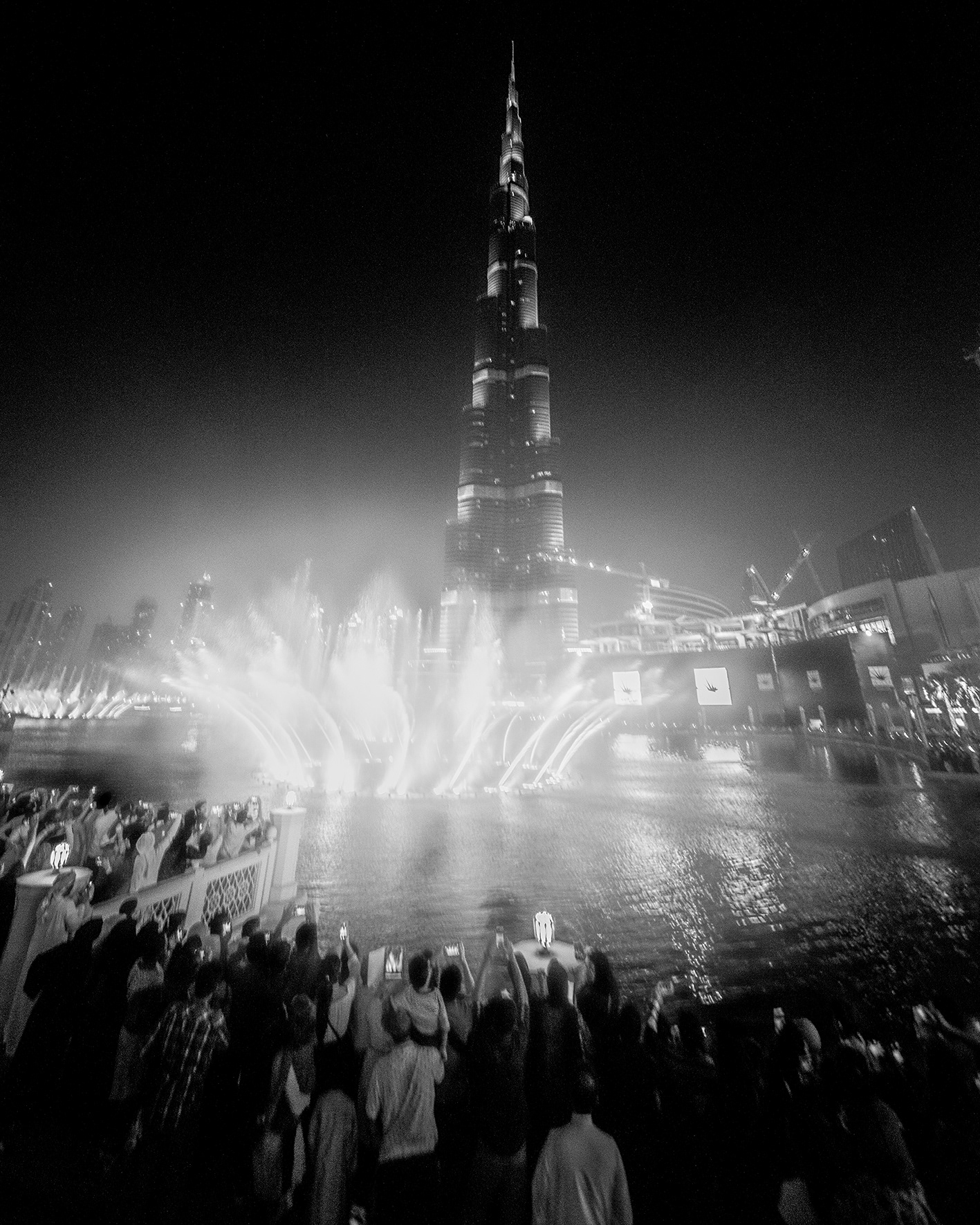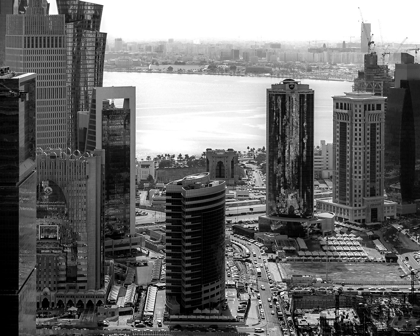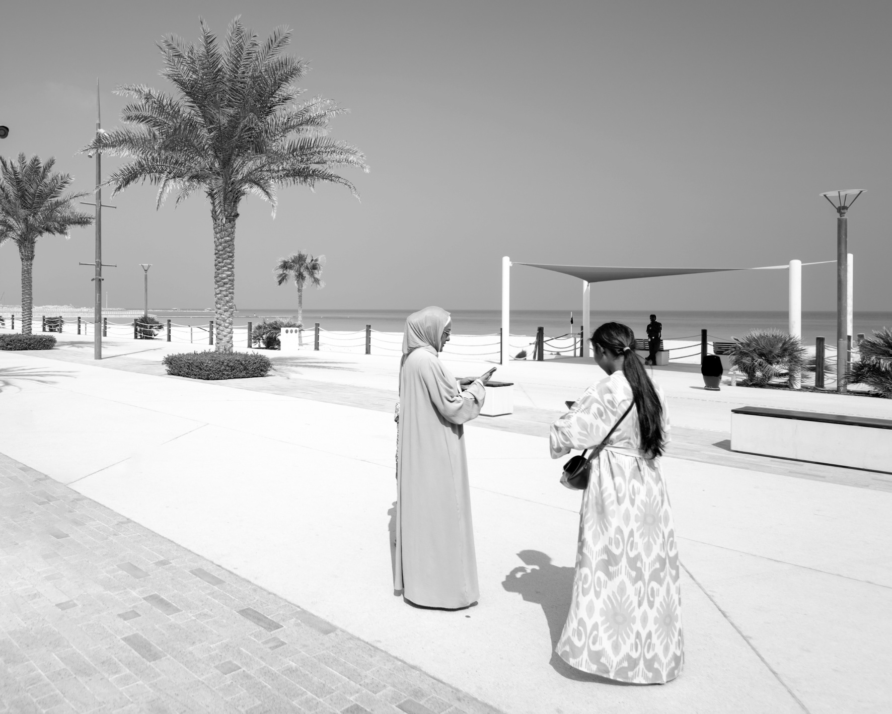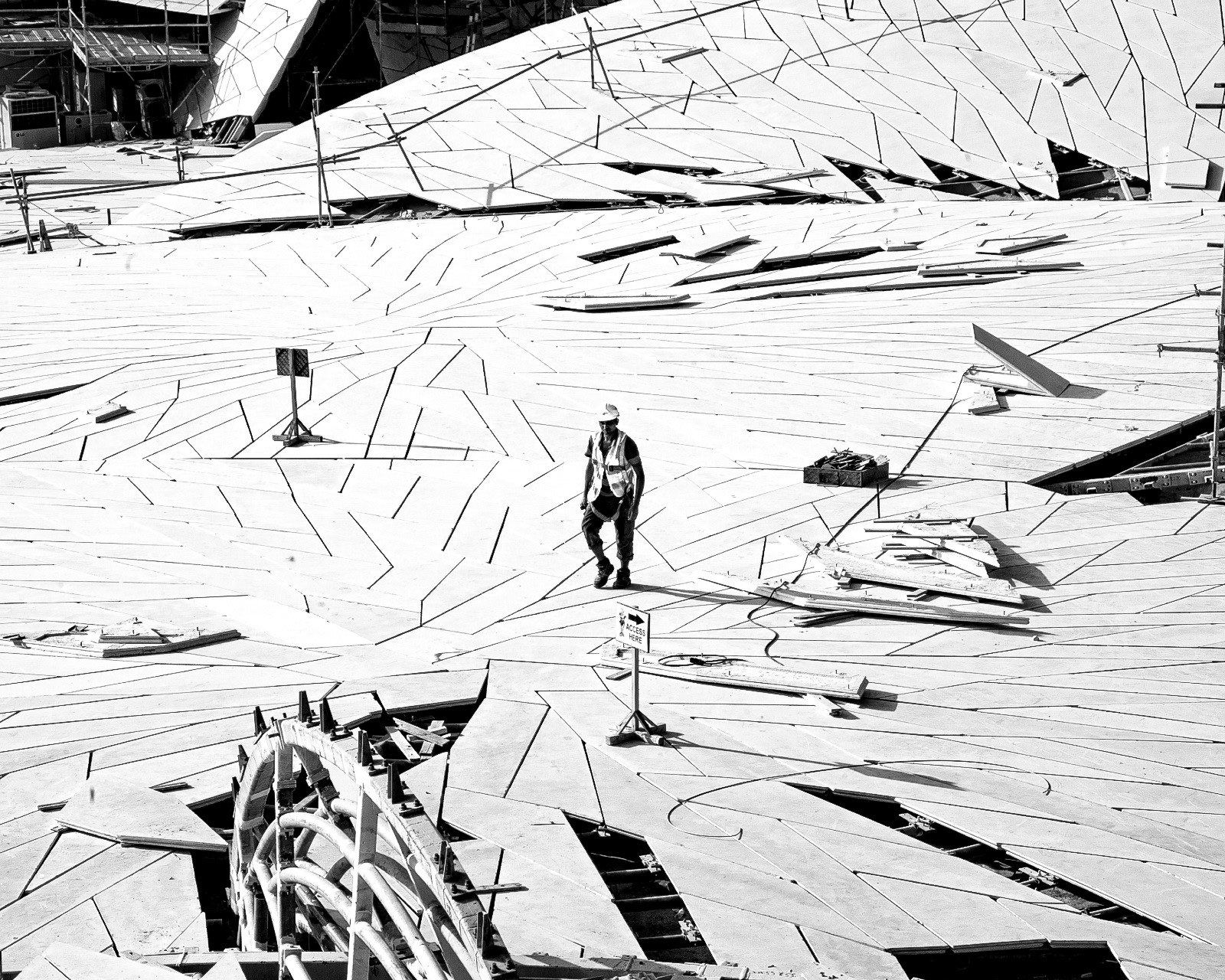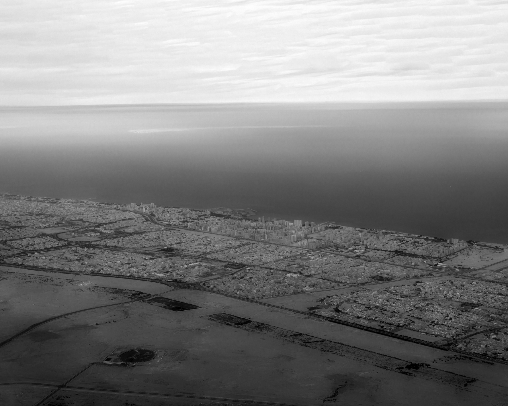 The photographs progress from vast resource hungry construction projects, workers exposed in the hard light and blank surroundings, through extravagant architecture, to opulent cities and the people who maintain and occupy them.