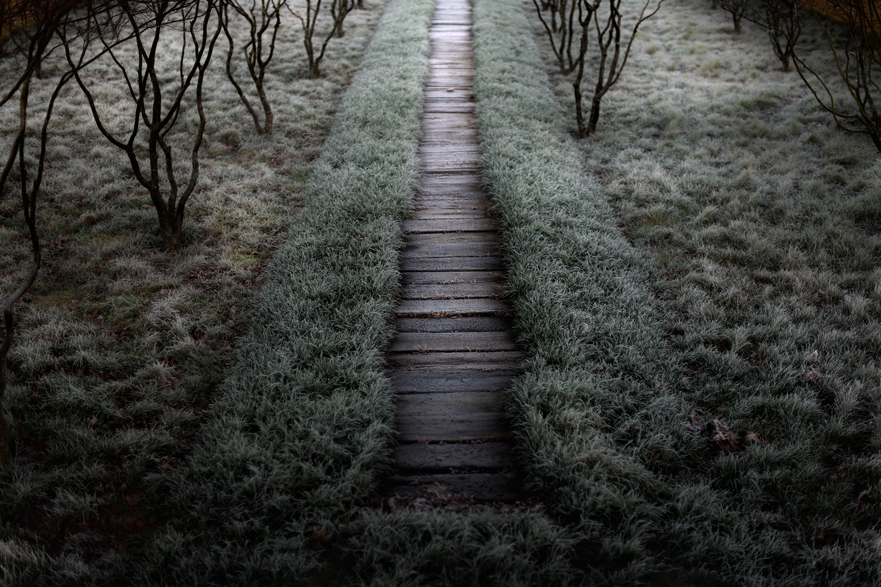 Shot in woodlands, parks, gardens and farmland the photographs draw on the imagery of folk lore, fairy tales and myth - the enchanted spot in the forest, the reflective entrancing pond, the cottage in the woods, behaviour of animals. This is the iconography of a deep-rooted attachment to the land; attuned to its beauty, harmony and cycles but wary of danger and mystery just below the surface or beyond our view.